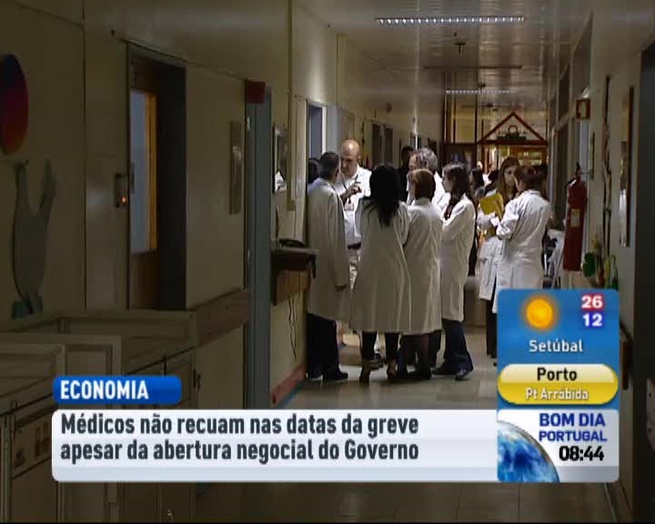 Os médicos mantêm a greve agendada para os próximos dois dias, os clínicos têm mais de 20 exigências. O fim do concurso para aquisição de serviços médicos é uma das principais reivindicações. Os médicos garantem estar disponíveis para negociar, mas só se for com Pedro Passos Coelho.