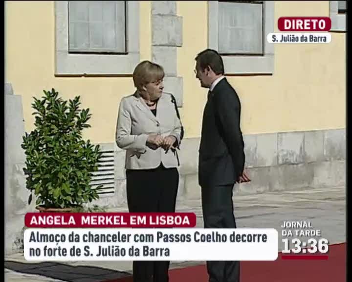 Foram muitas e visíveis as medidas de segurança na chegada de Angela Merkel ao forte de São Julião da Barra onde Pedro Passos Coelho recebeu a chanceler alemã para o almoço.