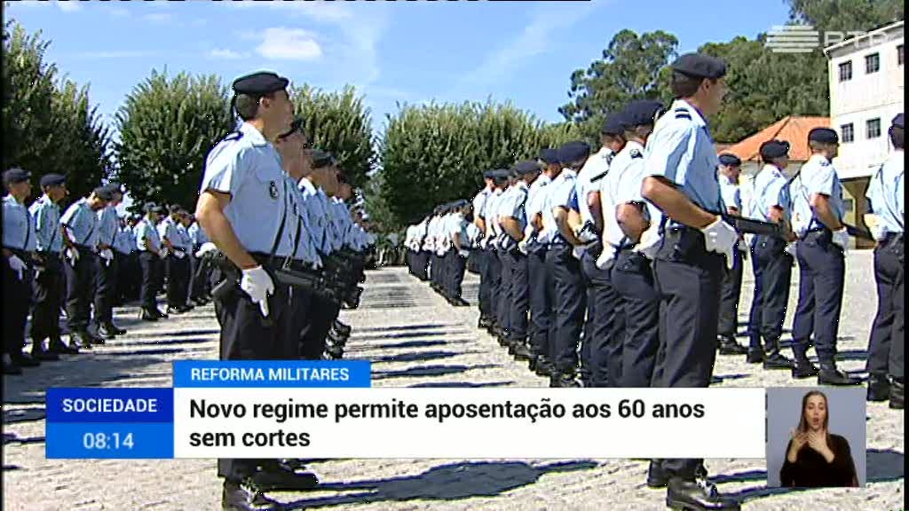 Os militares já podem reformar-se aos 60 anos. O novo regime entra este sábado em vigor. Com esta nova medida, os militares podem aposentar-se com menos seis anos de trabalho do que no regime geral e sem os cortes de 13% a que estavam sujeitos.