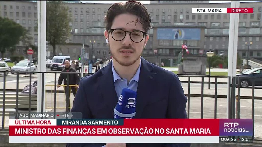 "A Unidade Local de Saúde de Santa Maria confirma que o Ministro de Estado e das Finanças, Joaquim Miranda Sarmento, deu entrada na Urgência Central do Hospital de Santa Maria na manhã desta quarta-feira, na sequência de uma indisposição", lê-se em comunicado da unidade.