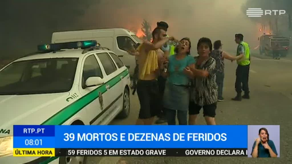 O incêndio que deflagrou na tarde de sábado provocou dezenas de mortos e feridos, sobretudo civis. Viveram-se momentos de pânico perante a violência das chamas.