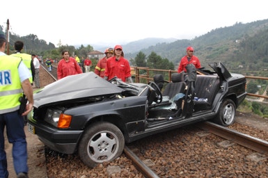 Por razões que estão por apurar, ao atravessar a passagem de nível sem guarda, o carro foi colhido pela composição ferroviária e foi arrastada numa extensão de cem metros ficando completamente destruída.