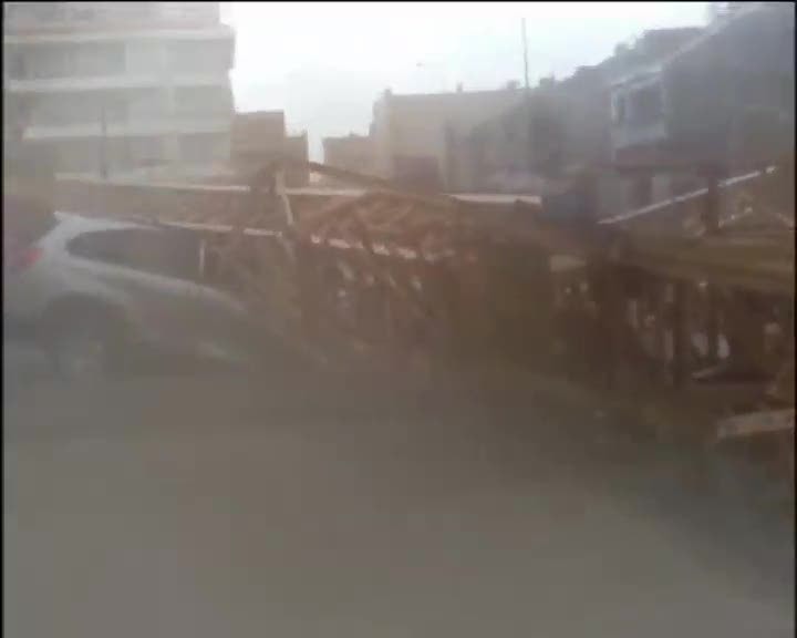 Na praia da barra em Ílhavo, uma grua caiu em cima de um carro