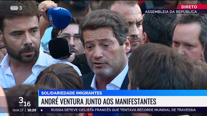 André Ventura juntou-se à manifestação, esta quarta-feira, em defesa dos direitos humanos junto ao Parlamento. O líder do Chega foi vaiado e recebido com insultos por parte das centenas de imigrantes que ali se encontravam.