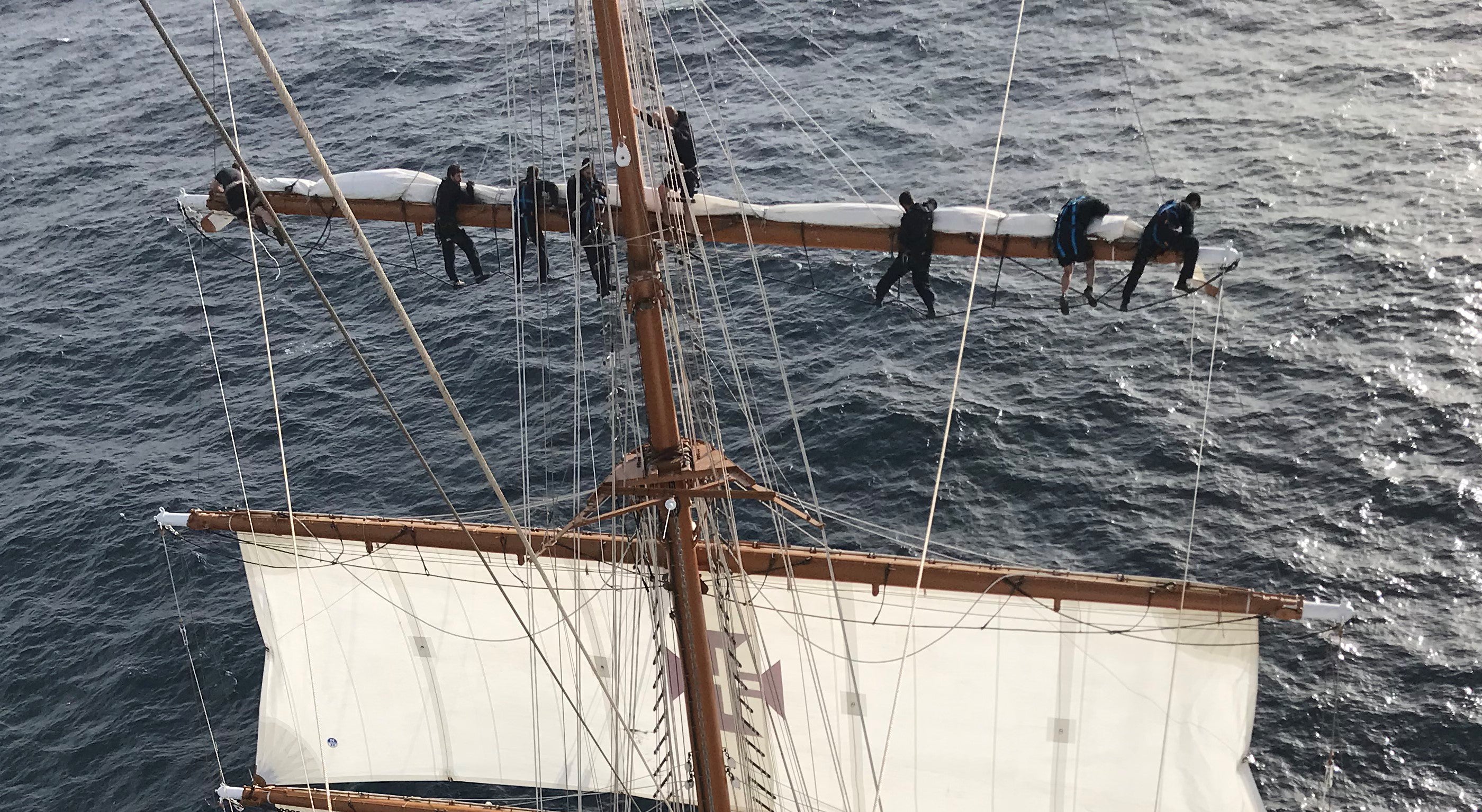 Competiram, como é habitual, as equipas do mastro grande e do traquete, a ver quem descia primeiro com a faina concluída. Desceu a equipa do traquete, mas acabou desclassificada e alvo de chacota dos adversários, por ter deixado solta uma das correias que devem atar o pano à verga. Teve de subir novamente um dos seus membros para emendar o erro.