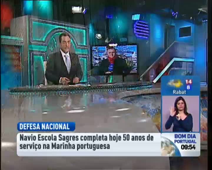 O navio-escola Sagres faz hoje 50 anos ao serviço da Marinha portuguesa. A embarcação está fundeada na Doca de Alcântara, em Lisboa. O navio-escola Sagres foi construído na Alemanha e já esteve também ao serviço do Brasil.
