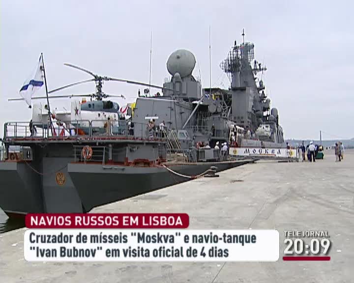 Navios da marinha da Federação da Rússia chegaram este fim-de-semana a Lisboa para uma visita oficial de 4 dias. Um cruzador de mísseis, aberto ao público, e um navio tanque compõem este grupo de navios. Na escala de trabalho no porto de Lisboa, estão já marcados encontros com representantes do Comando da Marinha Portuguesa e também da Câmara Municipal de Lisboa. Os dois navios seguem viagem na próxima terça-feira.