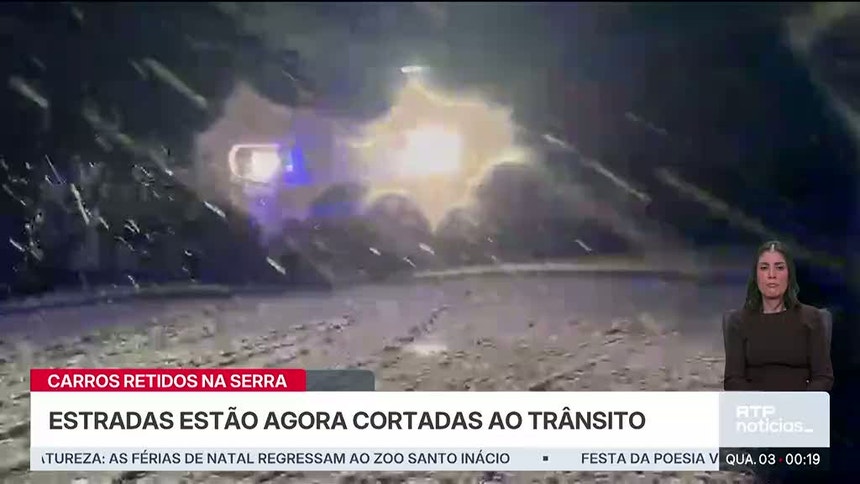 Ficaram 16 pessoas retidas num autocarro e dezenas de veículos na N321, devido à queda de neve, mas já decorrem as operações de limpeza das estradas.