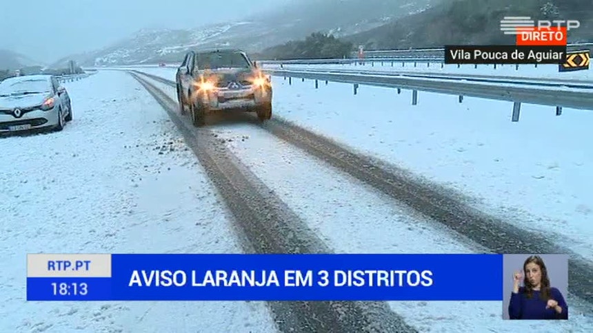 Bragança, Guarda e Vila Real estão sob aviso laranja (o segundo mais grave) devido à queda de neve. O aviso laranja mantém-se entre as 18h00 desta terça-feira e as 6h00 de quarta-feira.