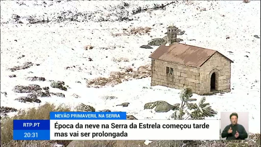 A neve voltou a cair em força na Serra da Estrela, mesmo em plena Primavera. Os acessos à Torre estão cortados.