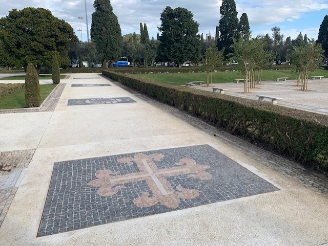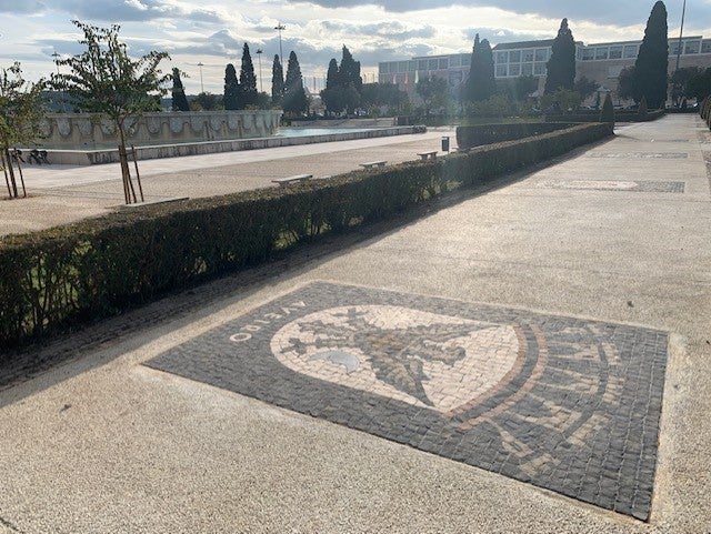 Depois da polémica da retirada dos brasões, representados em plantas ornamentais e florais, que corriam sérios riscos de desaparecer, os 32 brasões surgem agora apresentados através de calçada portuguesa.