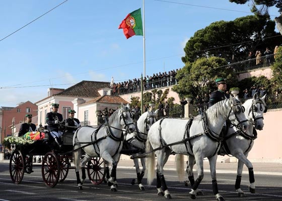 Armão militar transporta a urna do Mosteiro dos Jerónimos até ao Cemitério dos Prazeres.