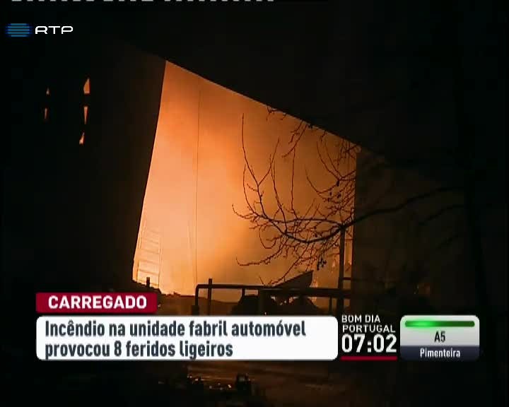 O incêndio que destruiu parcialmente uma fábrica de componentes para automóveis do Carregado fez oito feridos ligeiros. Cinco trabalhadores e três bombeiros tiveram de ser assistidos no local.
