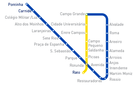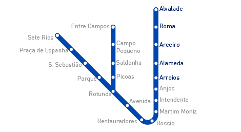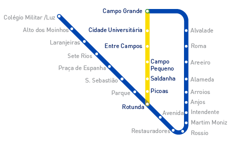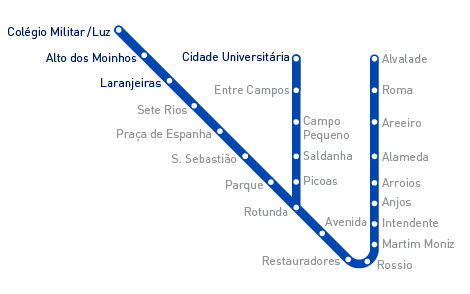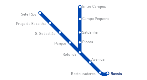 A 1 de março de 1998, a estação de Palhavã passa a designar-se Praça de Espanha; Rotunda passa a Marquês de Pombal; Sete Rios muda o nome para Jardim Zoológico e Socorro passa a designar-se Martim Moniz.