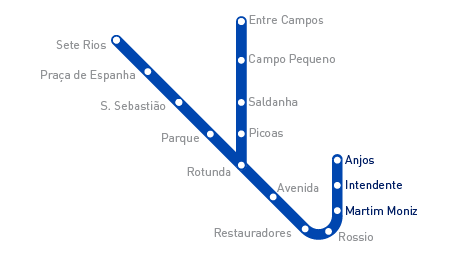 Em setembro de 1966, o Metropolitano de Lisboa continua a expandir-se com a abertura do troço Rossio- Anjos e são inauguradas ao público mais três estações: Socorro (atualmente Martim Moniz), Intendente e Anjos.