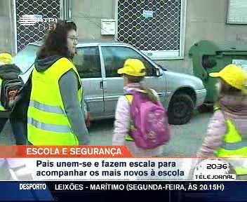 A associação de pais e a autarquia de Odivelas organizaram um Pedi-Bus que permite o acompanhamento dos alunos por adultos no percurso a pé entre a porta de casa e a escola.