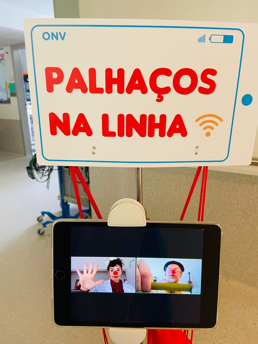 Os Doutores Palhaços chegam aos hospitais através de videochamadas.