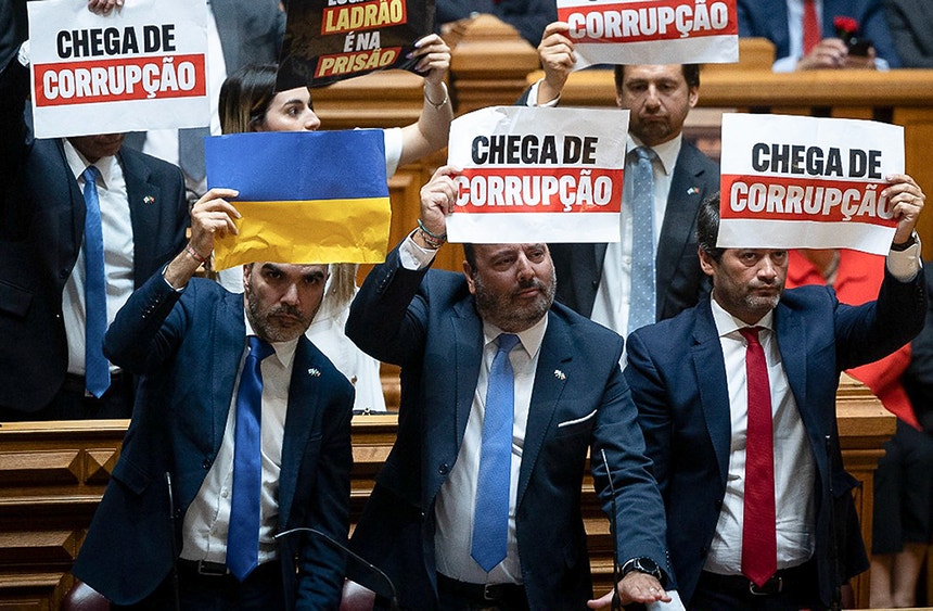 De recordar que ontem, durante a sessão de boas-vindas a Lula da Siva, os deputados do Chega ergueram cartazes durante toda a intervenção do presidente do Brasil no parlamento português, tendo sido repreendidos de forma veemente pelo presidente da Assembleia da República, Augusto Santos Silva.