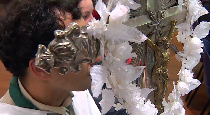 O Compasso pascal é uma tradição que ainda se mantém em muitas aldeias do país. Em Vitorino das Donas, em Ponte de Lima, os homens levam na cabeça lenços de mulheres.