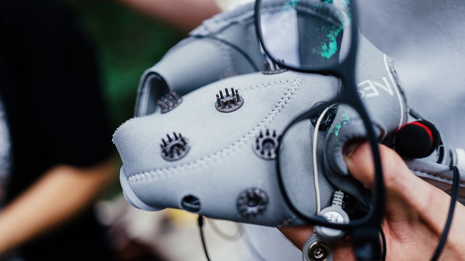 Ao todo, 32 elétrodos servem “de antena para medir a atividade elétrica”, explica o estudante e investigador João Amaro, e trazem um pormenor desagradável: uns pequenos picos que são essenciais para detetar a informação do cérebro trazida em gráficos que surgem em tempo real num ecrã.