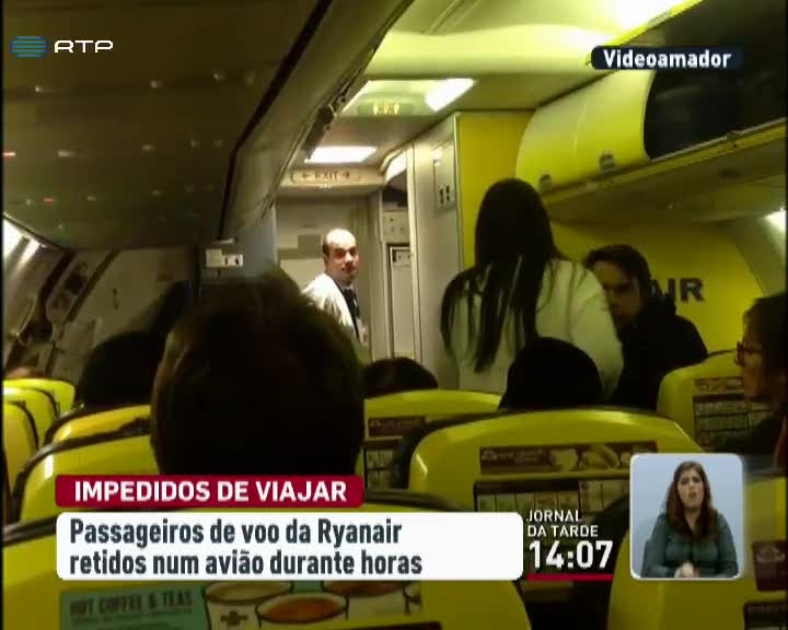 Os passageiros de um voo da Ryanair estiveram retidos, durante 12 horas, na passada sexta-feira, no aeroporto de Stansted, em Inglaterra, quando se preparavam para viajar para o Porto. A empresa alega que o atraso se deveu a condições meteorológicas, mas os passageiros filmaram uma situação insólita.