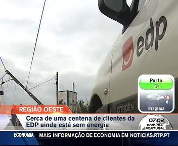 Na região do Oeste há pelo menos 50 famílias que estão ainda sem electricidade por causa do temporal. A EDP mantém as equipas no terreno e promete resolver em definitivo o problema nas próximas horas e garante ainda indemnizar os clientes afectados pelo corte de energia eléctrica estudando caso a caso.