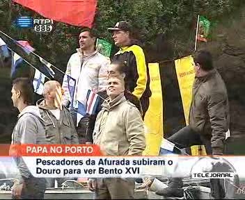 Os pescadores da Afurada subiram o Douro para receber Bento XVI junto à Ponte do Infante. A emoção instalou-se nas embarcações à passagem do sucessor de Pedro, o apóstolo pescador.