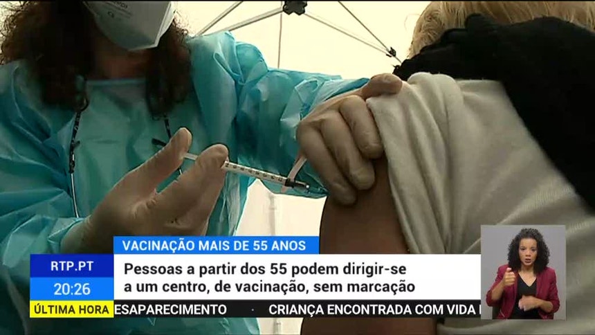 Quem tem mais de 55 anos deve dirigir-se ao centro de vacinação da residência para receber a vacina contra a Covid-19, sem necessidade de qualquer marcação prévia.
