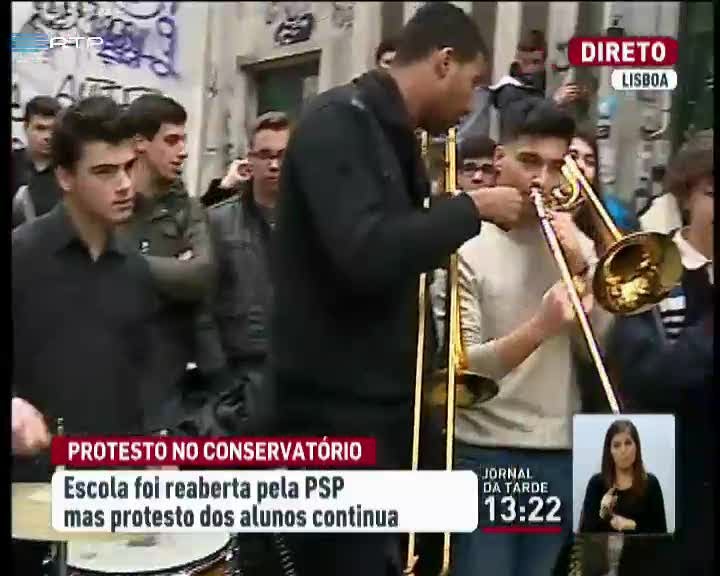 "A escola unida jamais será vencida" ou "vitória, vitória" foram palavras de protesto de mais de uma centena de alunos, quando perto das 10h00 a Escola de Música do Conservatório Nacional foi reaberta por elementos da Polícia de Segurança Pública.