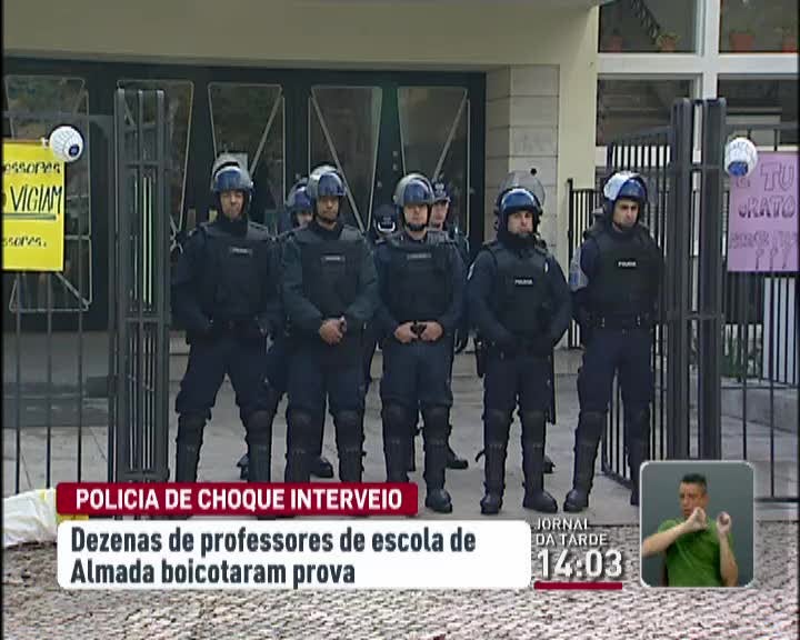 A polícia de choque esteve numa escola de Almada para travar uma tentativa de invasão. Dezenas de professores tentaram entrar na Escola secundária Emídio Navarro, mas o acesso foi bloqueado pelo diretor que acabou por pedir apoio à PSP. Os docentes ainda partiram alguns vidros com pontapés.
