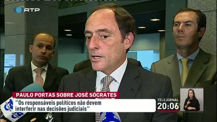 José Sócrates foi esta sexta-feira libertado. Questionado sobre esta situação, Paulo Portas defendeu que os responsáveis políticos não devem interferir nas decisões judiciais. "À política o que é da política, à justiça o que é da justiça", afirmou o vice-primeiro-ministro.