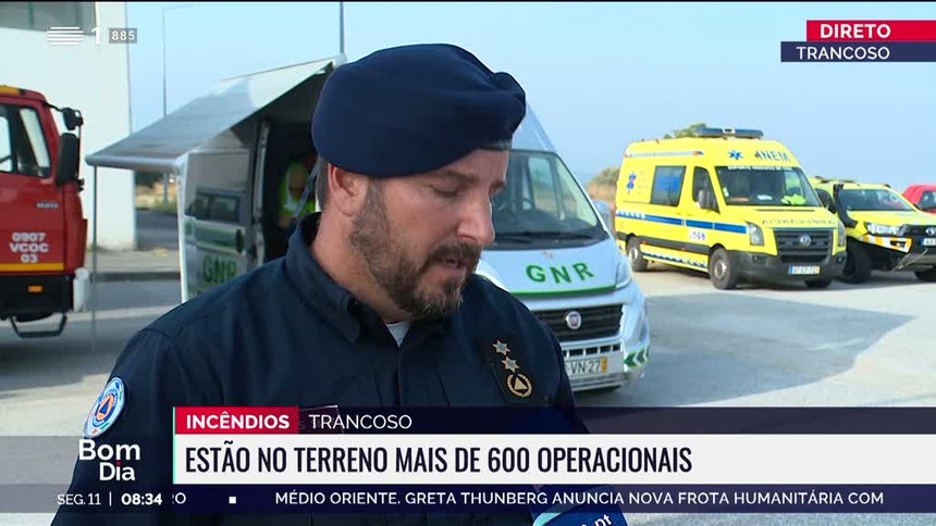 Também em Trancoso, no distrito da Guarda, uma outro incêndio está a mobilizar 575 bombeiros e duzentas viaturas, mas o ataque às chamas está a evoluir de forma favorável.