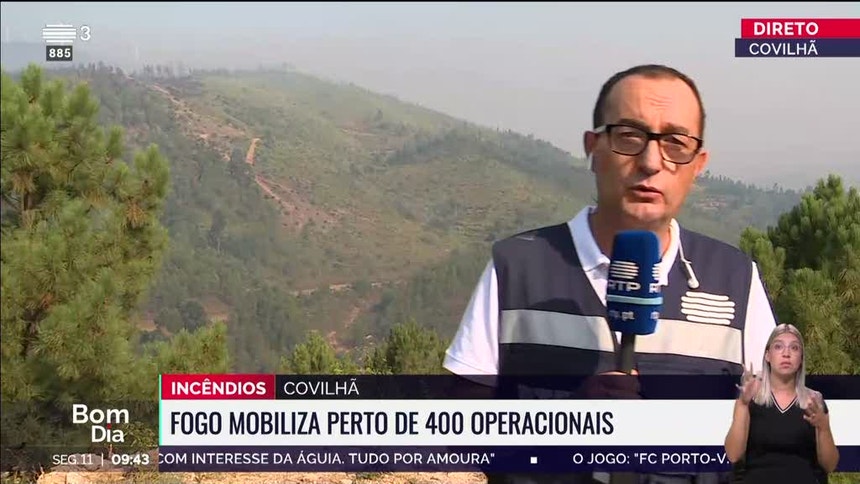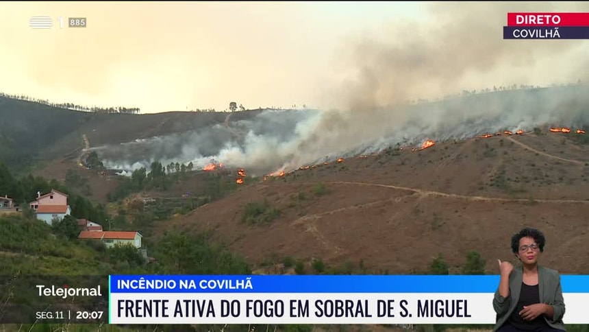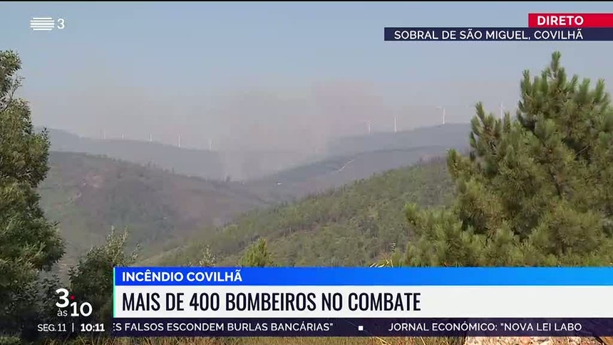 - O incêndio da Covilhã continua também ativo. Deglagrou a meio da tarde de domingo em Sobral de São Miguel. O facto de se tratar de uma zona mais isolada fez com que os meios demorrassem meia hora a chegar ao local. O declive do terreno acabou por dificultar o combate. Este incêndio mobiliza mais de 400 operacionais e quase 130 viaturas;