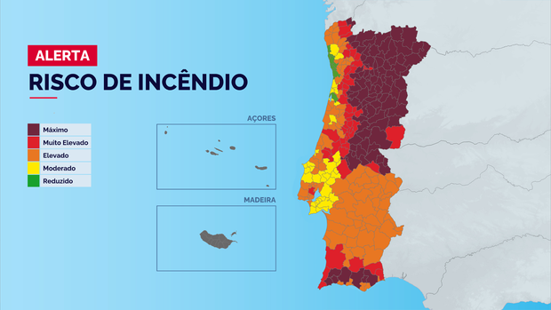 Dezenas de concelhos do interior Norte e Centro do país e do Algarve estão hoje em risco máximo de incêndio
