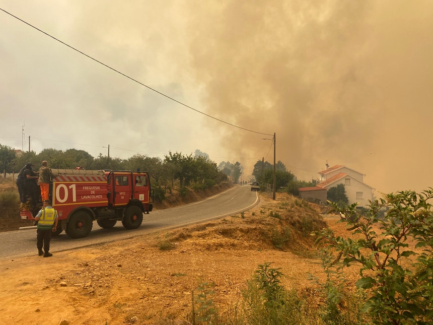 As chamas ameaçam várias localidades e avançam de forma descontrolada. Lavacolhos esteve completamente cercada pelas chamas ao longo do dia. O fumo denso não permite grande visibilidade.