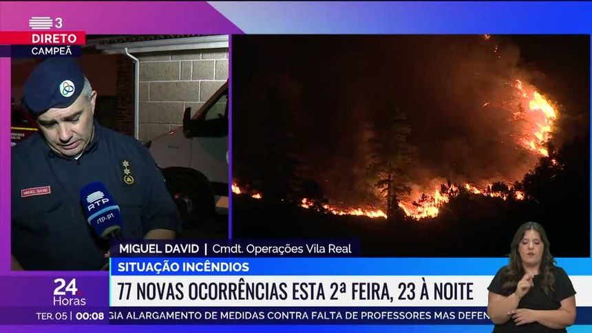 - Em Vila Real e Mondim de Basto houve alguns reacendimentos durante a tarde. Os bombeiros esperam que o incêndio que teve início no sábado possa entrar brevemente em resolução;