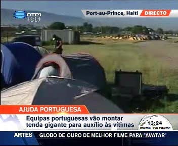 No Haiti a enviada-especial da RTP, Rosário Salgueiro, acompanha todos os passos da ajuda portuguesa ao povo haitiano. Para já o mais importante foi montar o acampamento e uma tenda gigante para auxílio às vítimas.