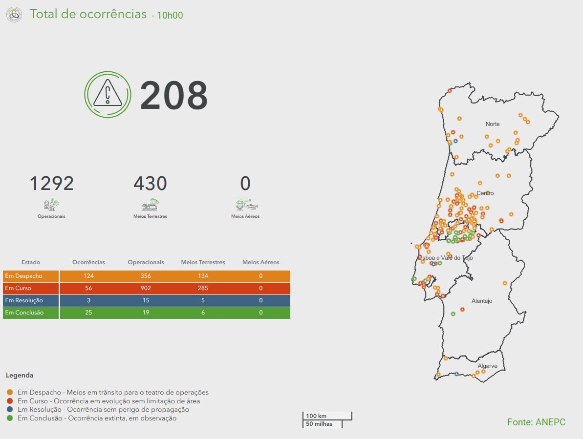 - Na última madrugada, não foram registadas "ocorrências significativas", segundo a Autoridade Nacional de Emergência e Proteção Civil, ouvida pela agência Lusa às 6h30;