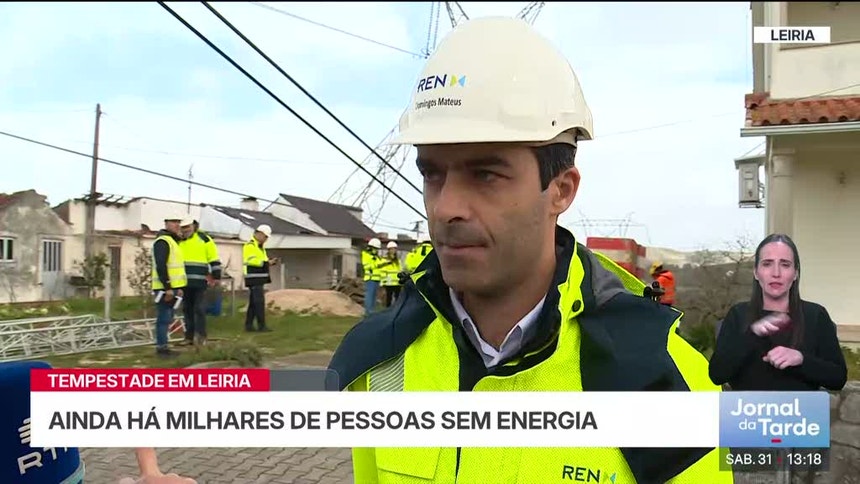 - Cerca de 200 mil pessoas permaneciam, este sábado, sem abastecimento de energia elétrica. Ainda há povoações isoladas, sem luz ou comunicações - é o caso da União de Freguesias de Colmeias e Memória, em Leiria;