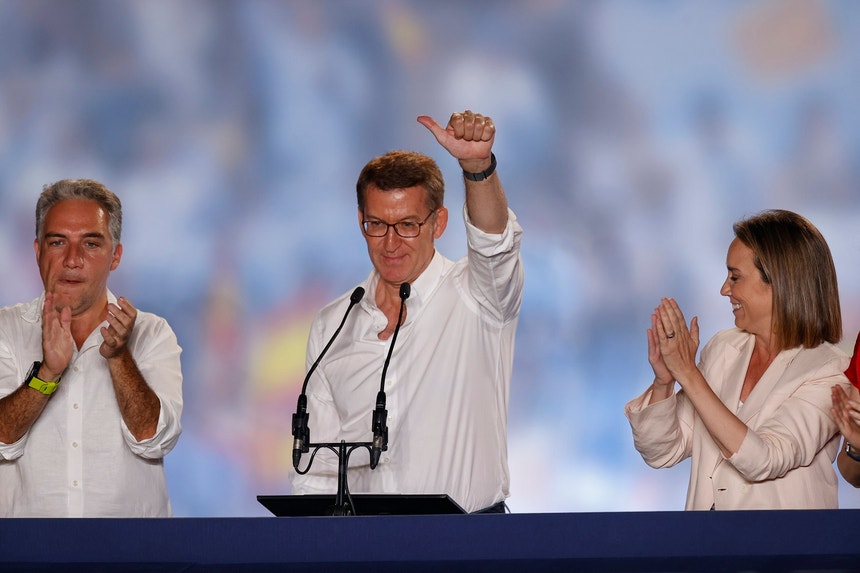 O Partido Popular (PP) venceu as eleições espanholas que ocorreram este domingo, mas não foi o suficiente para fazer a festa por completo. O presidente do Partido Popular, Alberto Núñez Feijóo, perante um resultado não maioritário, pediu aos outros partidos do país que o deixem formar governo e que não se crie um "bloqueio".