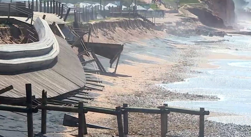 A praia do Forte Novo, em Quarteira, no Algarve, foi arrasada pela agitação marítima dos últimos dias. Ficou praticamente sem areia e com os passadiços destruídos.