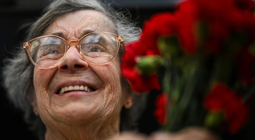 Celeste pegou no seu ramo de cravos -- "vermelhos e brancos" -- e rumou ao Rossio para ver "o que há tanto tempo esperava que acontecesse".