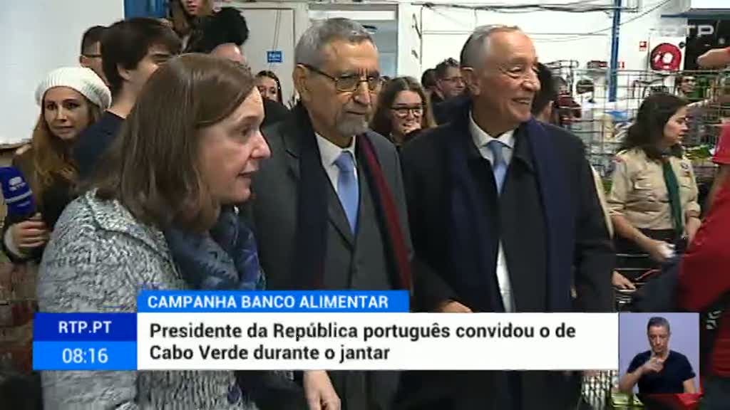 Os presidentes de Portugal e Cabo Verde juntaram-se a centenas de voluntários na última madrugada. Os 2 Chefes de Estado chegaram ao Banco Alimentar, em Lisboa, às 2h00.