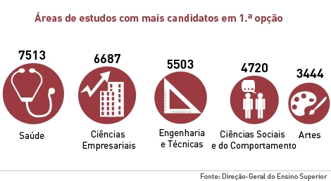 De acordo com o comunicado enviado pelo Ministério da Educação e Ciência às redações, “a procura por áreas de estudo, medida através do número de candidatos em primeira opção aos cursos de cada área, incide, maioritariamente nas áreas da Saúde, das Ciências Empresariais, das Engenharias e das Ciências Sociais e do Comportamento”.
