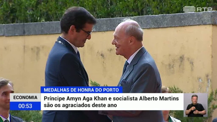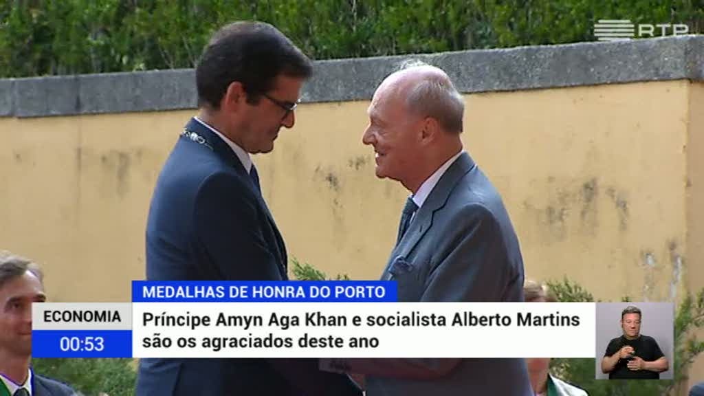 A fundação Aga Khan vai começar a intervir na cidade do Porto na educação e cultura. O anúncio foi feito pelo príncipe Amyn Aga Khan na cerimónia de entrega da medalha de honra da cidade atribuída pela câmara municipal. A autarquia agraciou ainda o histórico socialista, Alberto Martins.