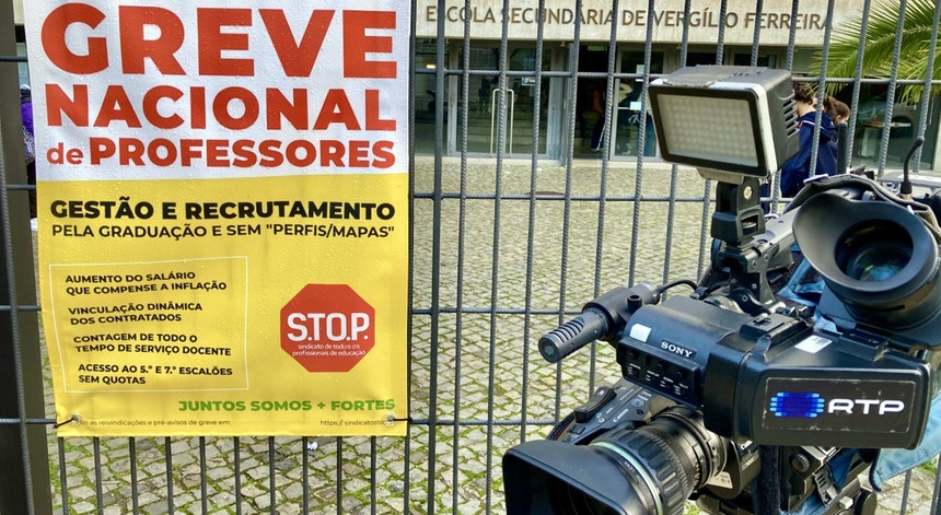 A jornalista Sónia Lobo Silva falou com André Pestana, presidente do Sindicato de Todos os Profissionais da Educação, à porta de uma das escolas encerradas devido à greve dos professores.