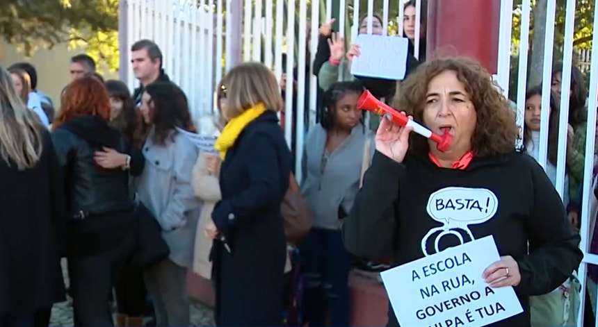 Professores e alunos da EB 2,3 D. Luís de Mendonça Furtado, no Barreiro, estiveram esta manhã em protesto. Em causa dizem estar a defesa da escola pública.