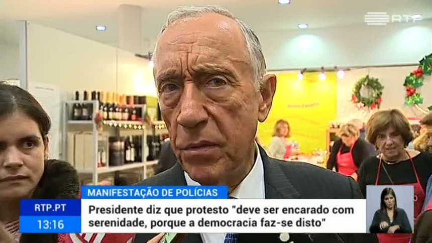 O Presidente da República, Marcelo Rebelo de Sousa, defendeu hoje, questionado sobre a manifestação de profissionais da PSP e da GNR, que esse é "um direito legítimo dos portugueses", que "deve ser encarado com serenidade".