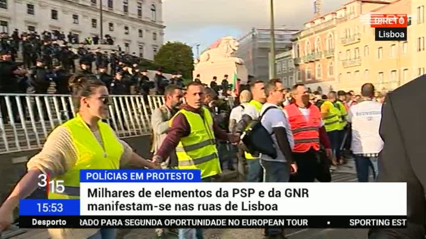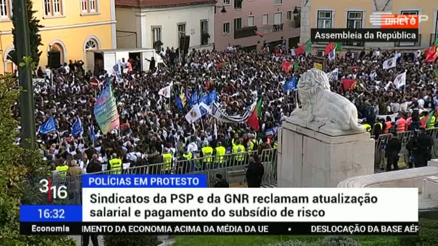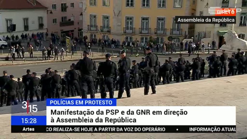 O anúncio foi feito por megafone, em frente à Assembleia da República, onde mais de três mil polícias, militares da GNR e apoiantes se manifestaram para reivindicar direitos salariais e sociais que exigem ao Governo desde a anterior legislatura.