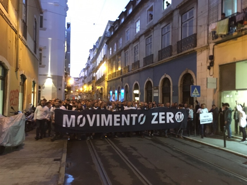 Também se via uma faixa verde, amarela e vermelha com a inscrição Movimento Zero, um movimento social inorgânico criado em maio deste ano por elementos da PSP e da GNR que, segundo a sua página no Facebook, luta pela "valorização, dignidade e respeito" das forças de segurança.